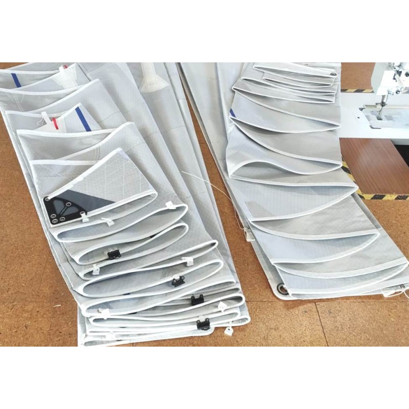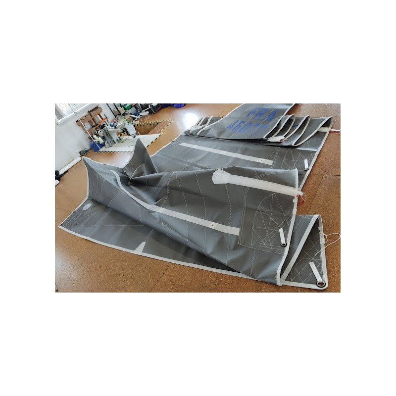 Грот Трирадиальный раскрой. Фаловая дощечка. Два ряда рифления. Латкарманы и комплект полу сквозными латами. Нержавеющие кренгельсы. Круглые накладки усилений и боуты. Булинь и стопор булиня. Киса для паруса. Срок изготовления: Срок изготовления парусов составляет 3 недели с момента получения полного заказа (заказ, размеры и оплаты).